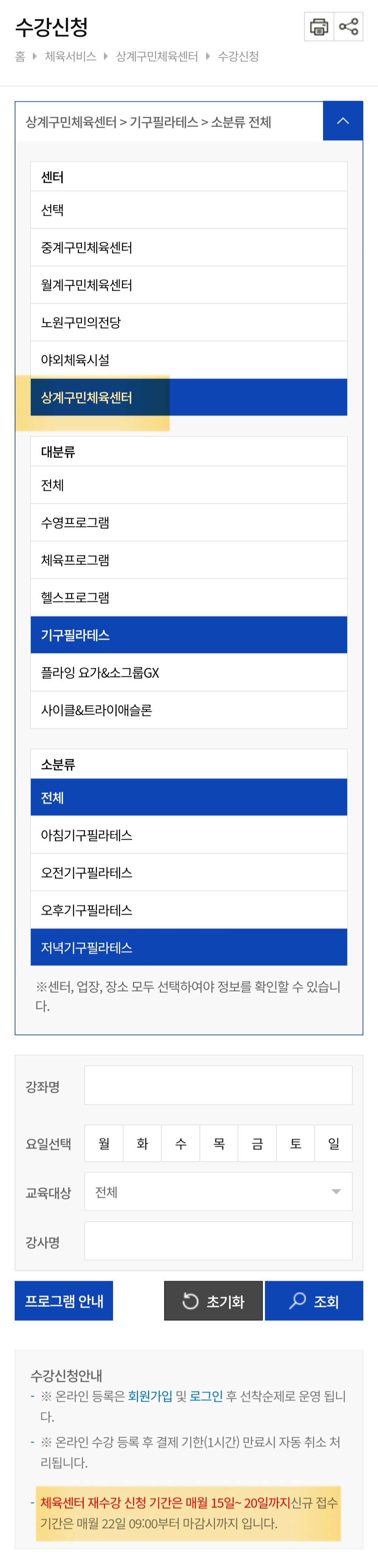 처리완료 [상계구민체육센터] 신규등록 안내 오류 관련 |