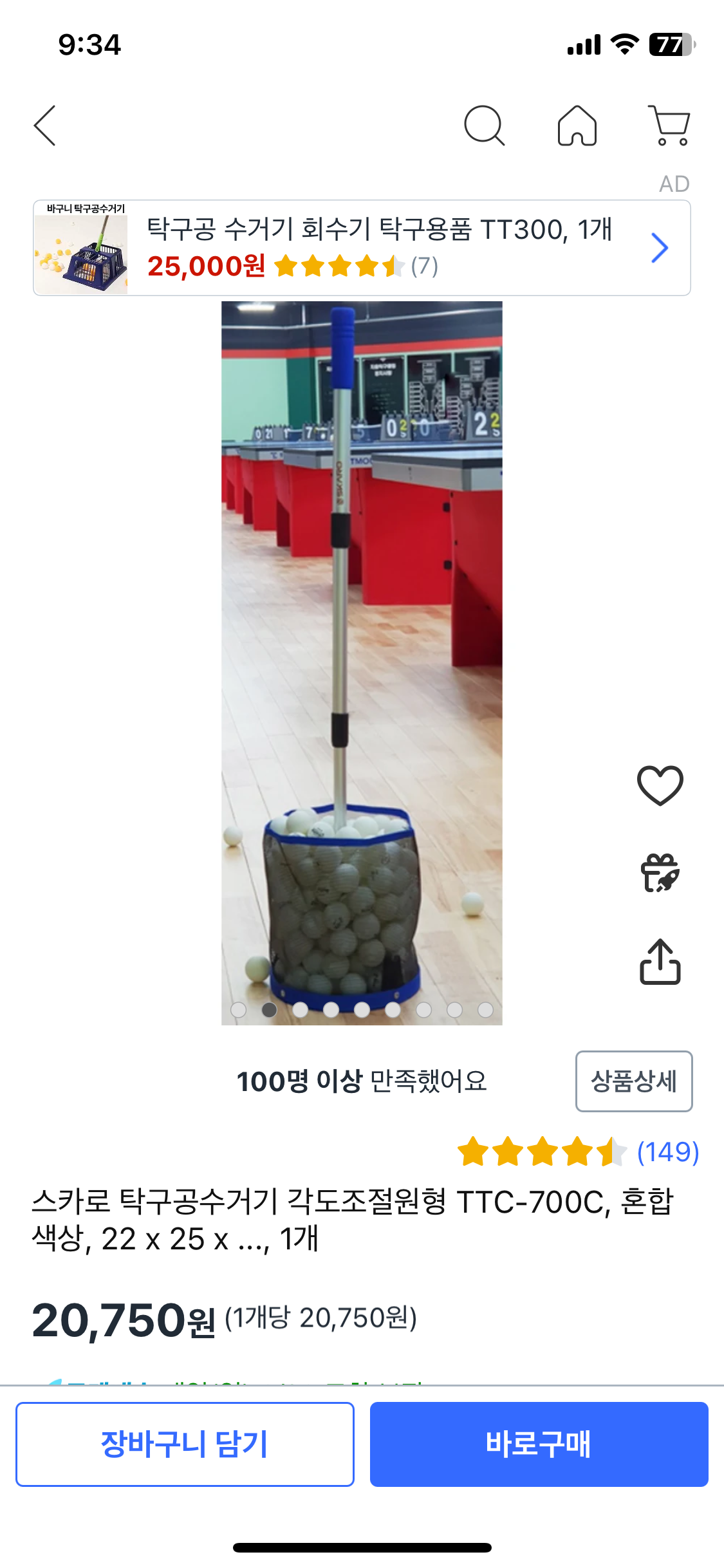 아래 사진으로 올린 종류와 같은 수거기 몇개 비치 부탁드립니다. (건강해지려고 새벽탁구 치는데 공줍는라 허리랑 무릎이 아프네요.) |