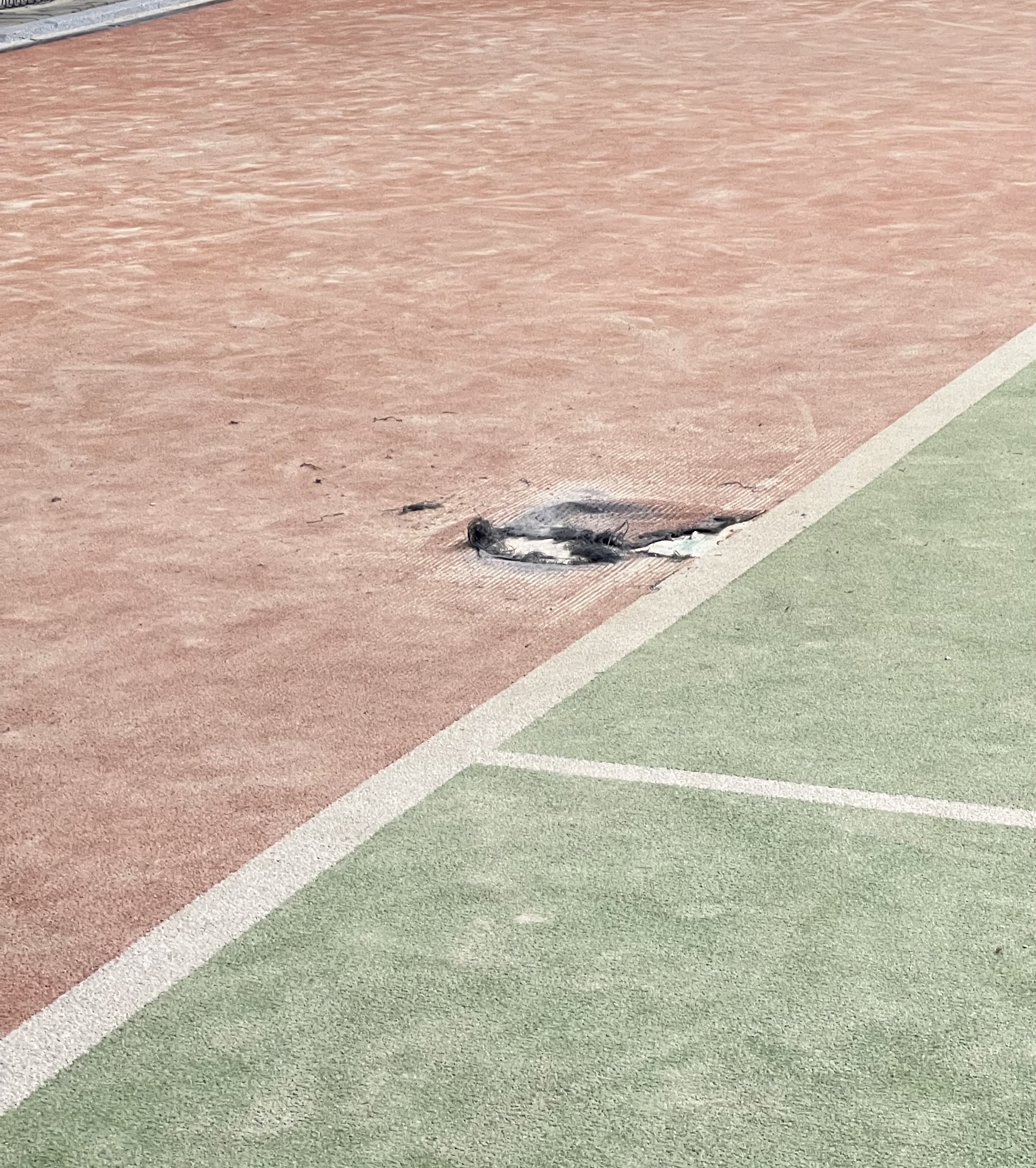 2주 전에 방문했을때보다 더 많이 뜯겨있어서 이대로 방치시에는 미끄러짐이나 걸림 등의 사고위험이 커보여서 코트정비가 필요해보입니다. |