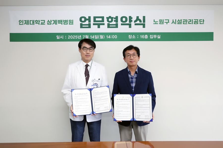 노원구시설관리공단 김주성 이사장은 “임직원의 건강이 곧 공단의 경쟁력이라는 생각으로 직원 복지 향상을 위해 다양한 노력을 진행 중”이라며, “상계백병원의 진정성 있는 협력에 감사드리며, 앞으로도 지역사회와 함께하는 건강한 일터를 만들어가겠다.”고 밝혔다.