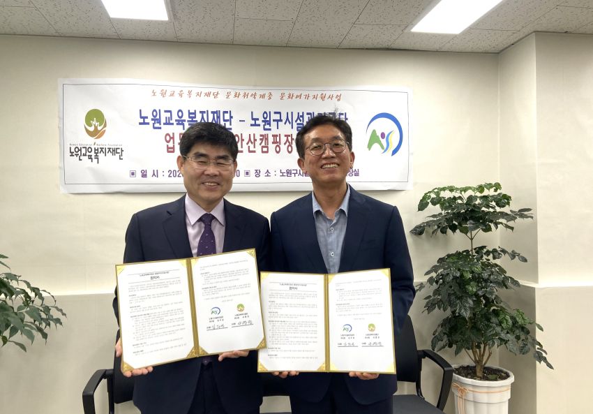 지난 21일, 노원구시설관리공단은 노원교육복지재단과 노원구 내 문화 취약계층을 대상으로 캠핑의 기회를 제공하는 '슬기로운 캠핑생활' 업무 협약을 맺었습니다. 노원구시설관리공단은 노원교육복지재단과 2025년 5월 21일부터 2026년 5월 20일까지의 협약을 통해 노원구 내 문화 취약계층(다자녀, 기초생활수급자 및 차상위계층, 한부모, 다문화가정 등)을 대상으로 초안산캠핑장 장소를 제공하여 지역주민의 삶의 질 향상과 활력을 제공하고자 합니다. 노원구시설관리공단은 매월 2-3건의 캠핑 지정 이용일을 제공해 다양한 문화 향유의 기회를 제공할 예정입니다. 초안산캠핑장은 노원구시설관리공단이 관리하는 시설로, 기존 경사지형을 이용한 테라스캠핑존, 너른 초지와 실개천이 있는 파크캠핑존, 숲속 낭만과 여유를 즐길 수 있는 힐링캠핑존, 영유아를 둔 가족들을 위한 캐빈하우스를 갖추고 있습니다. 초안산캠핑장은 1호선 녹천역 근방에 위치해, 서울 도심 속에서 힐링의 시간을 가질 수 있는 공간입니다. 노원구시설관리공단은 이번 업무 협약을 계기로 지역 내 문화적 격차 해소와 주민 모두의 행복한 여가생활 지원을 위해 앞으로도 지속적으로 노력하겠습니다. 문화 소외계층을 포함한 모든 주민이 캠핑을 통해 소중한 추억과 휴식의 시간을 누릴 수 있도록 아낌없이 지원하겠습니다. 앞으로도 주민 여러분의 많은 관심과 따뜻한 응원을 부탁드리며, 더 나은 지역사회를 만들어가는 여정에 함께해 주시길 바랍니다.