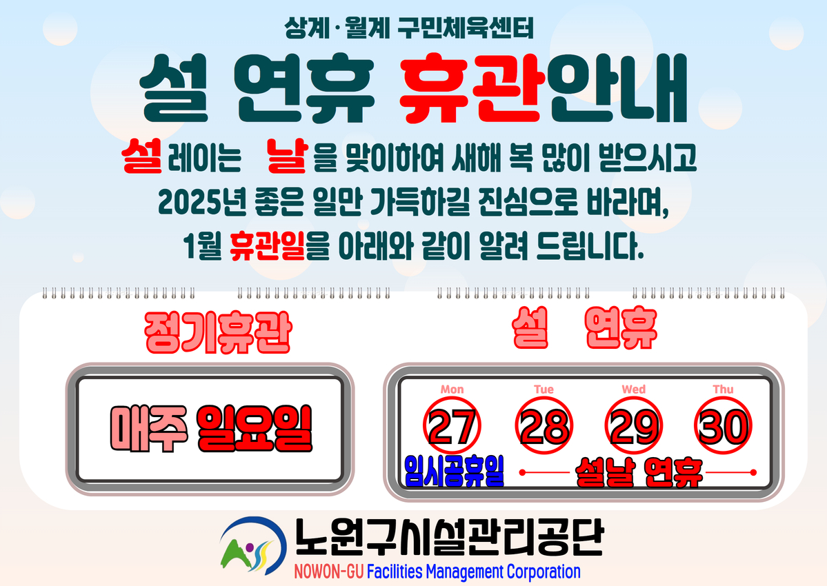 [상계, 월계 구민체육센터] 설 연휴 휴관안내