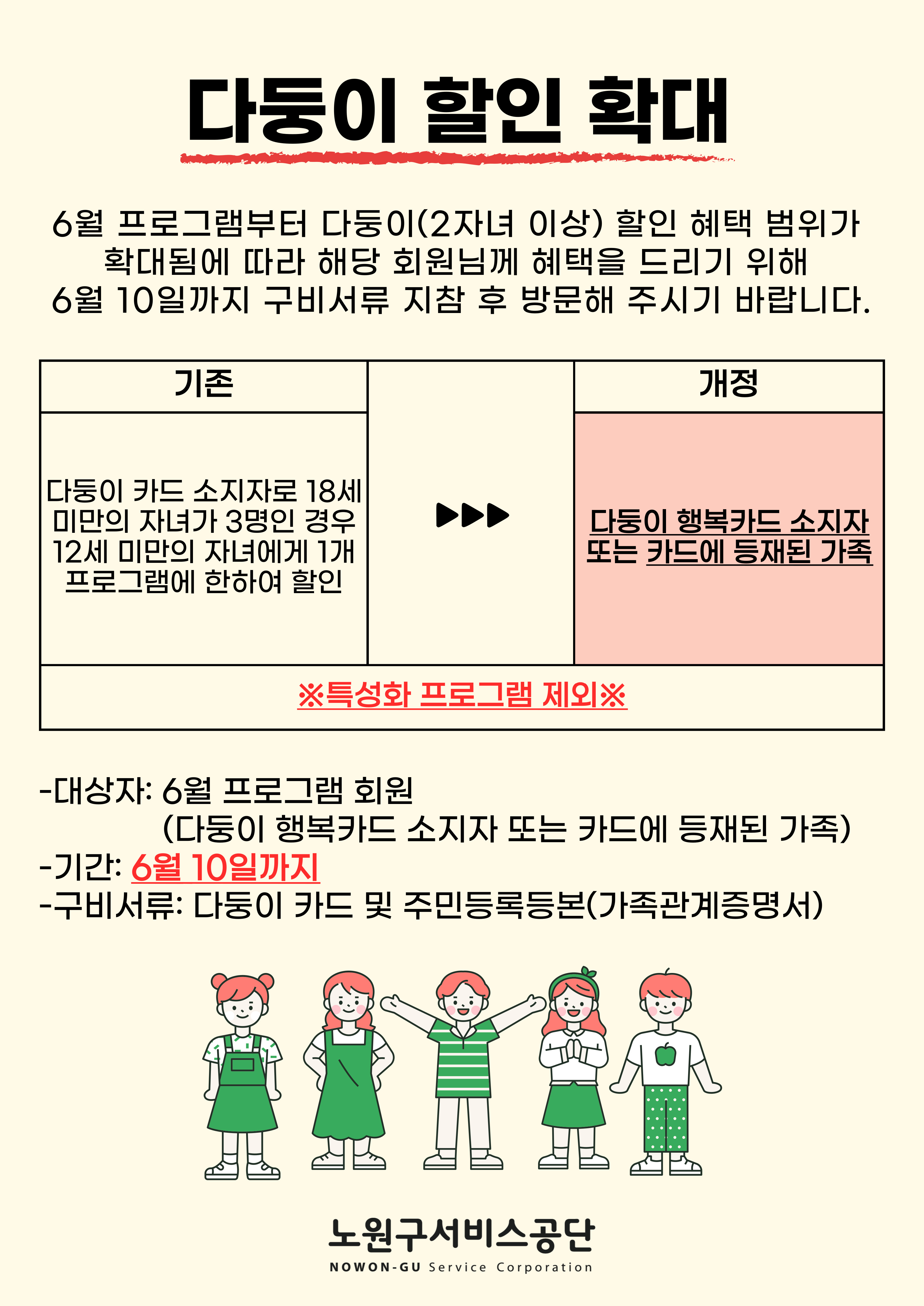 [월계/중계구민체육센터] 다둥이 할인 확대 내용 안내