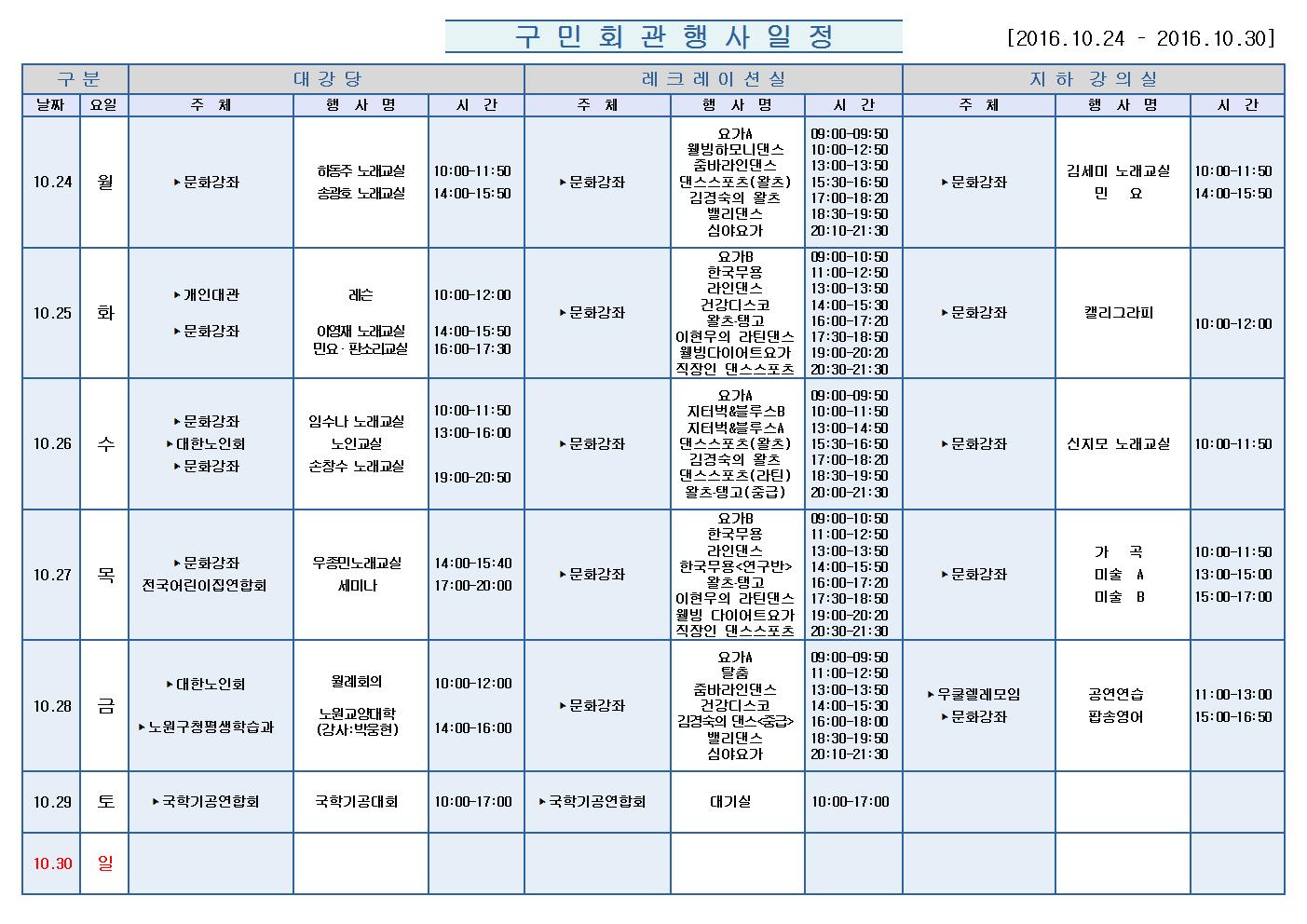 10월24일(월)부터 10월 30일 (일)까지의 구민회관 행사 일정을 공지해드리오니