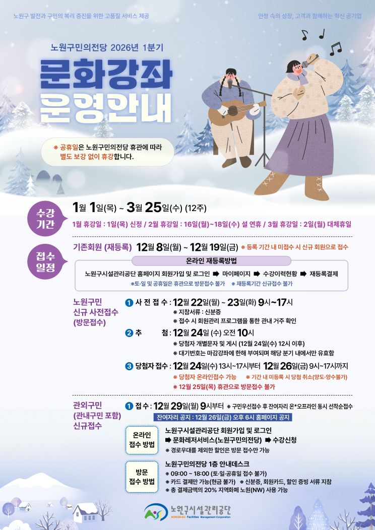 [노원구민의전당] 2026년 1분기 문화강좌 프로그램 안내