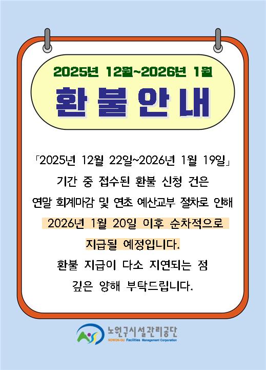 [월계/상계/공릉구민체육센터] 환불안내 (2025년 12월~2026년 1월)