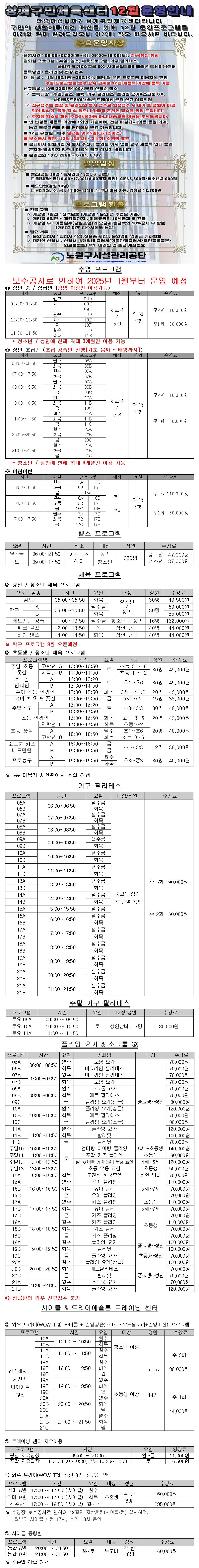 [상계구민체육센터] 2024년 12월 운영안내
