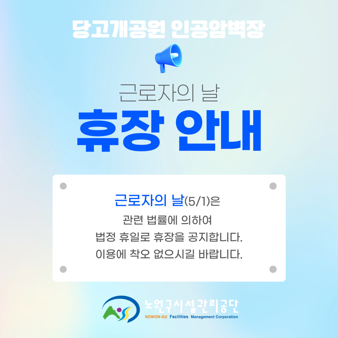 [당고개공원 인공암벽장] 5월 근로자의날 휴관일 안내
