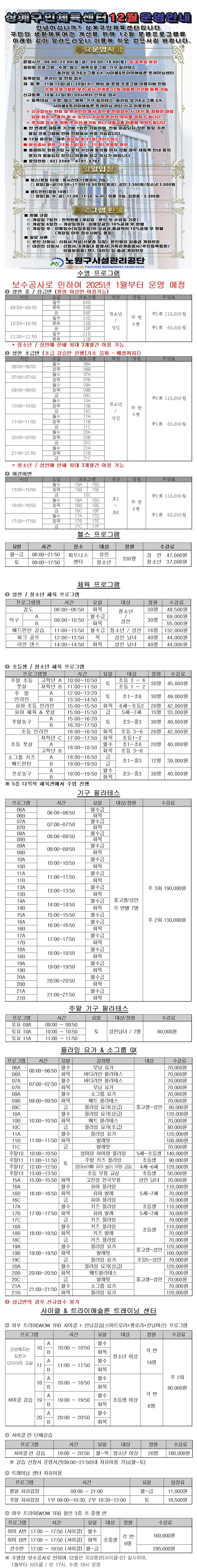 [상계구민체육센터] 2024년 12월 운영안내(수정)