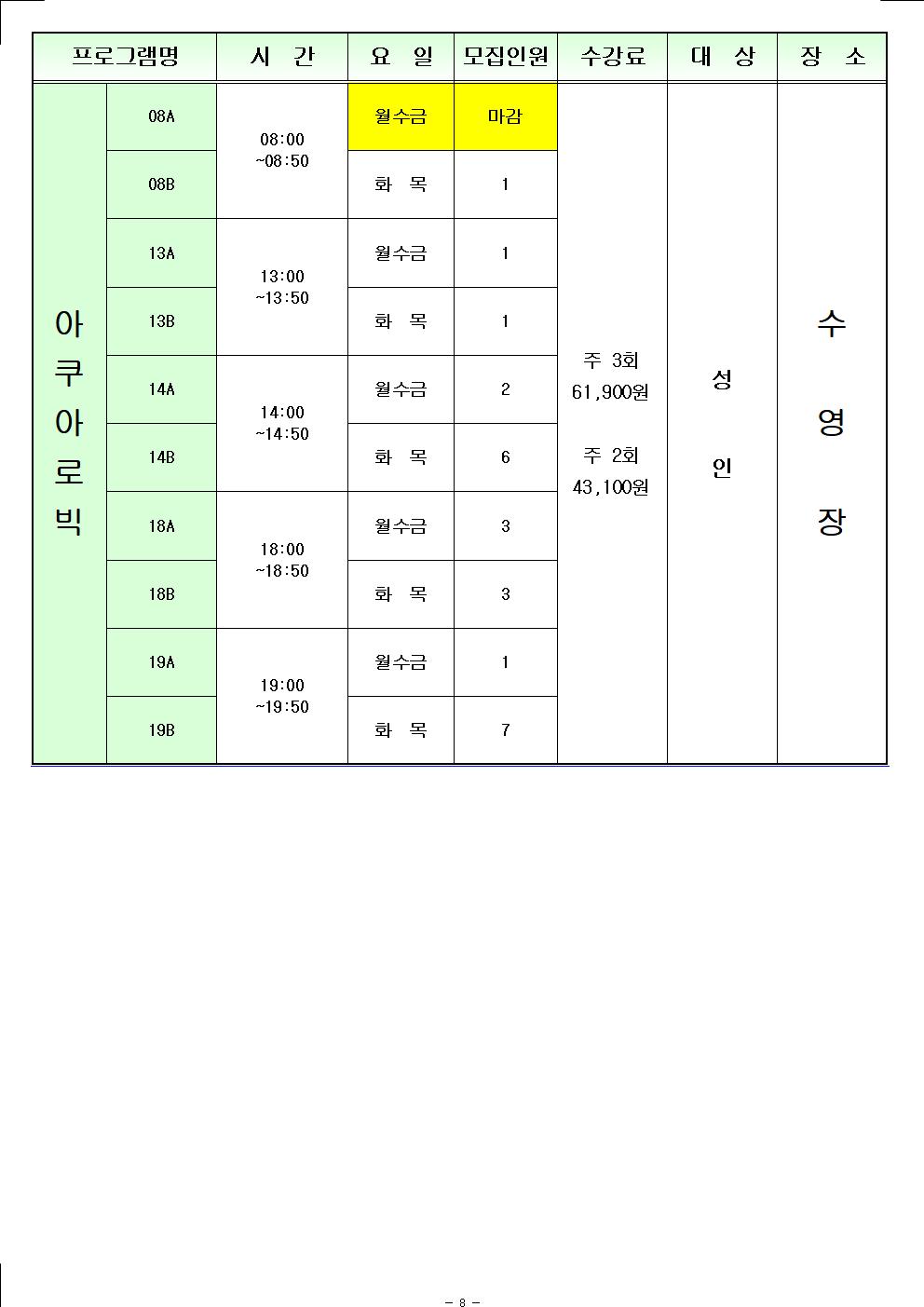 월계구민체육센터 1월 신규 접수 모집 인원 현황을 안내해 드립니다.