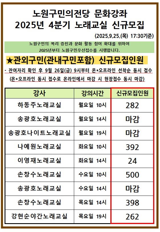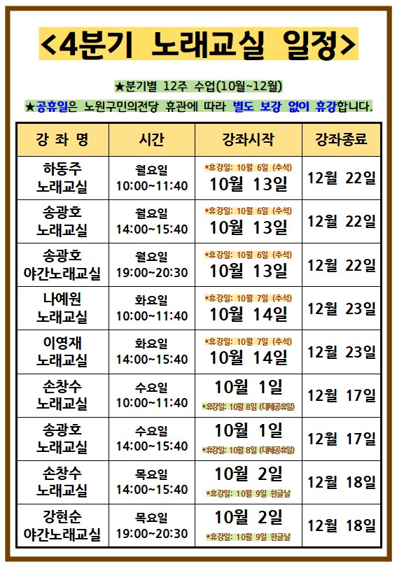 [노원구민의전당] 2025년 4분기 문화강좌 신규 모집 인원 & 강좌 일정 안내