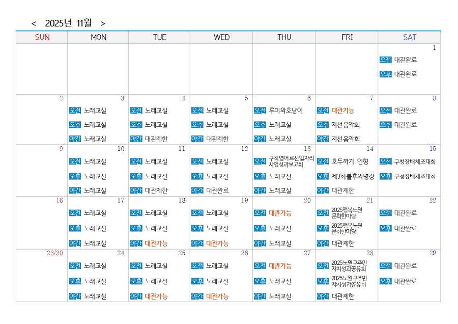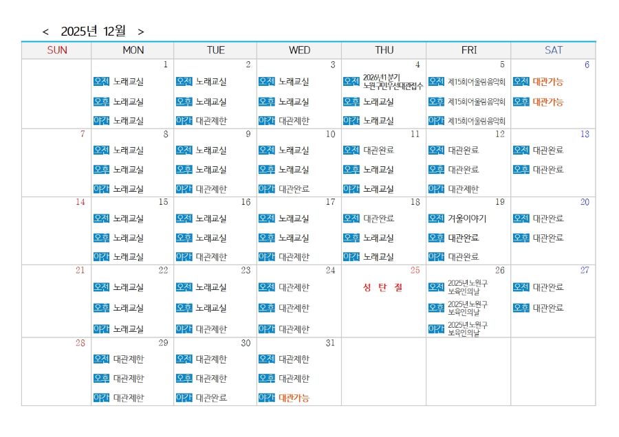 [노원구민의전당] 2025년 4분기 대강당 일정(2025. 11. 4.)