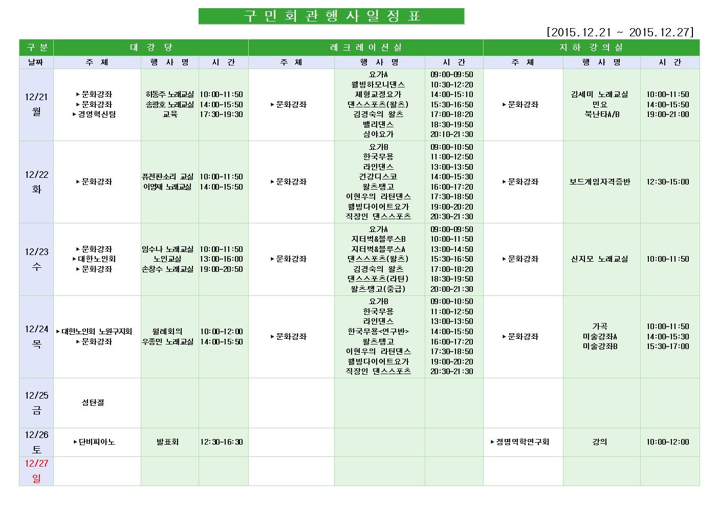 노원구민회관 행사일정표 (2015.12.21~12.27) |