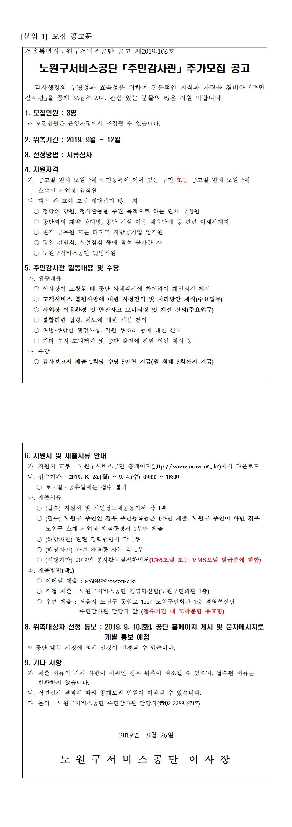 노원구서비스공단 주민감사관 추가모집 공고 |